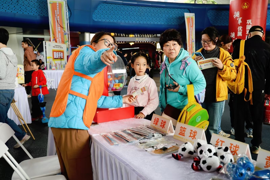 作为“体育配送进基层”的升级举措,本次活动延续了杨浦区体育技能配送的公益属性。市民不仅能免费体验各类运动项目,完成打卡任务还能兑换运动钥匙圈、发带、球类玩偶等定制礼品,现场设置的祝福红包墙更增添了互动乐趣。活动期间,工作人员还向市民普及了这项免费的体育“配送”服务:企事业单位或社区只需提交需求表格,就能申请3节免费体育技能课或1次体育科学讲座,相关服务已覆盖全区社区、园区、校区、营区等多个场景。